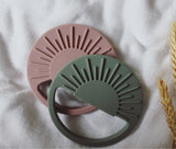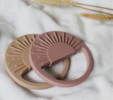 This modern and gender neutral design is perfectly designed for easy grasp and hold by their little one. This beautiful teether features a sunshine image that is raised and bumpy on both sides for sensory and rubbing in those sore little gums.