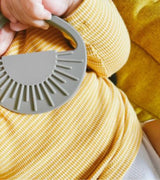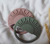 This modern and gender neutral design is perfectly designed for easy grasp and hold by their little one.  This beautiful teether features a sunshine image that is raised and bumpy on both sides for sensory and rubbing in those sore little gums.