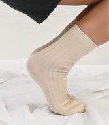 Le Bon Shoppe's "Her" socks will make her throw all her other socks away. Classically ribbed, perfect height, breathable cotton-blend yarn in a classic porcelain cream colour.